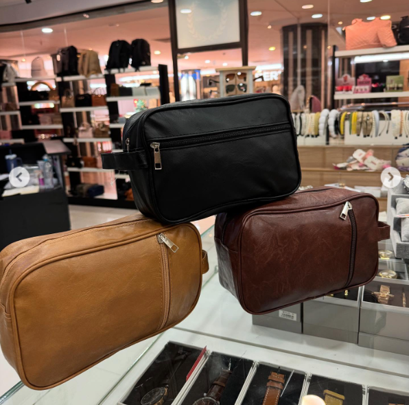 Ideal para llevar tus artículos personales con estilo y organización. Este neceser masculino está confeccionado en material tipo cuero de acabado elegante, disponible en tres colores sobrios: negro, marrón y camel.